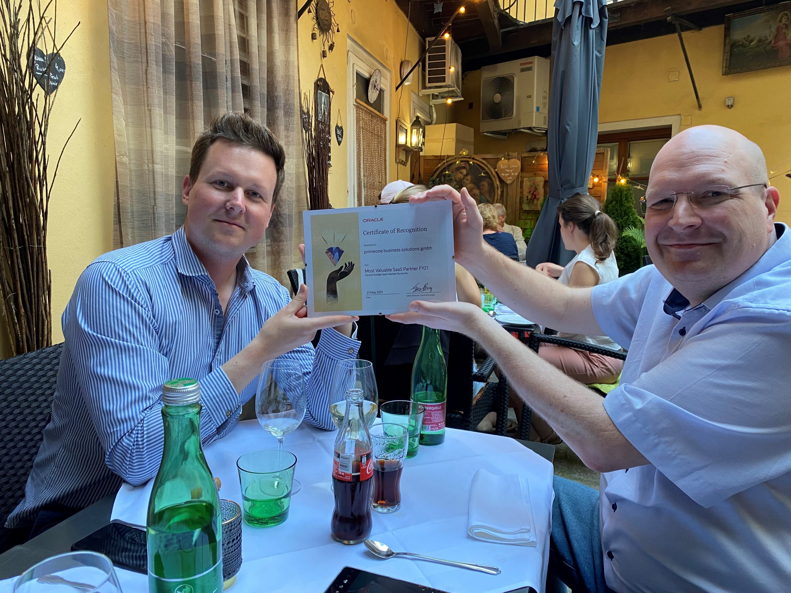 Das alles geht natürlich zum einen nur mit einem unschlagbaren Team, und zum anderen mit einem der führenden Softwareanbieter. Oracle hat uns, in Person von Max Byloff (Sales Director CEE, CIS & MEA), bereits im Juni 2021 den Award als „Most valuable SaaS Partner FY21“ für Central Europe überreicht. Cloud ist bereits seit 2009 Teil unsere DNA… oder wie wir intern gerne scherzen „WE ARE BORN IN THE CLOUD“. Solche Awards sind dann das Sahnehäubchen und geben Kraft für die kommenden Projekte und Herausforderungen.